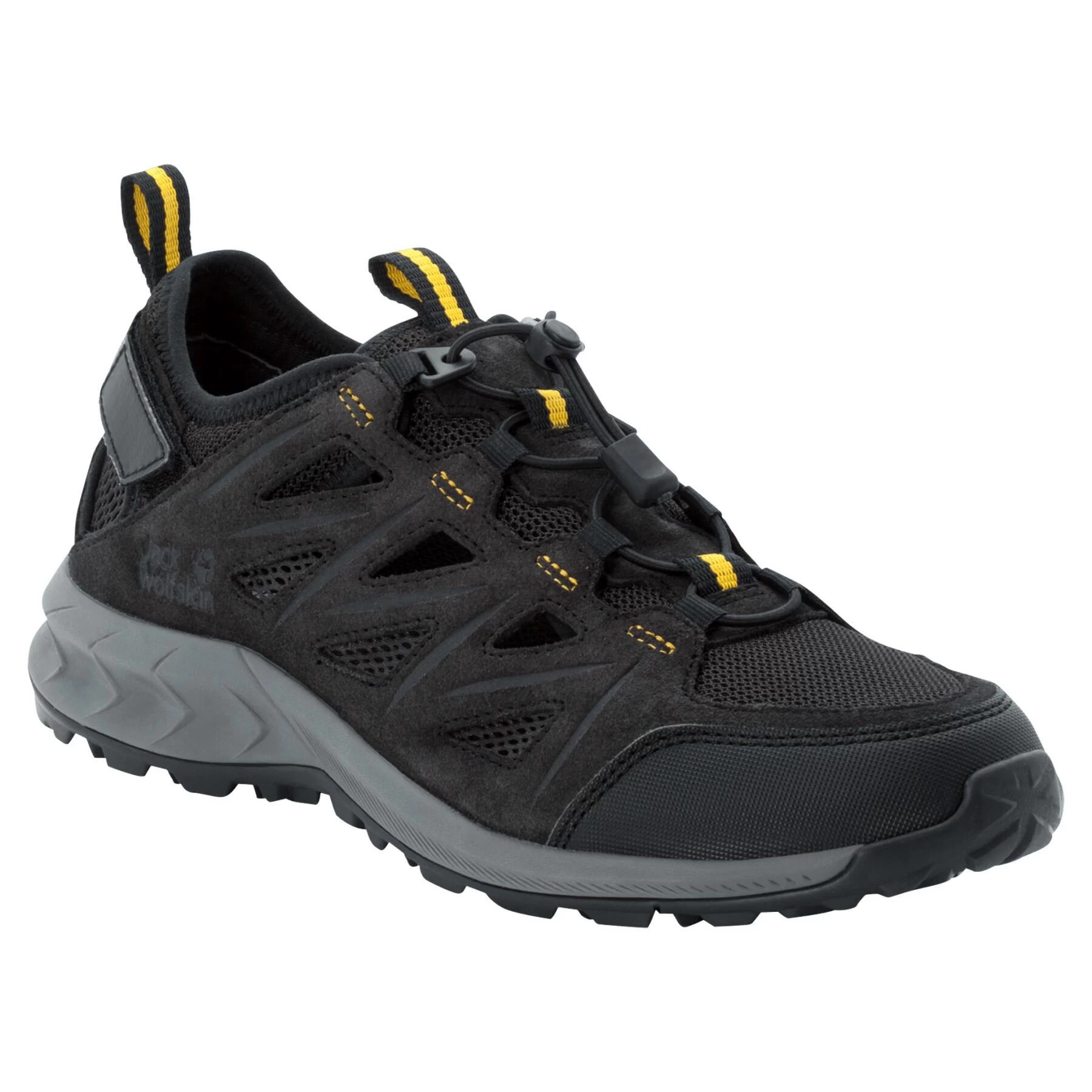 Chaussure de randonnée aux fonctions multiples avec système de laçage rapide et très bon amorti. Vous traversez la ville puis la forêt pour arriver finalement à votre clairière préférée. Et aux pieds vous portez : votre WOODLAND 2 HYBRID LOW. Elle a tous les avantages d’une chaussure de randonnée, tout en étant dotée d’une aération comme une sandale. Les ouvertures d’aération sur les côtés garantissent un bon climat au niveau des pieds. Et grâce au système de laçage rapide pratique et à la fermeture velcro au talon, vous ouvrez et fermez la chaussure en un tour de main et pouvez aussi l’adapter parfaitement à votre pied. La semelle intermédiaire en EVA et la semelle intérieure en PU amortissent chacun de vos pas – même lorsque le chemin devient un peu plus exigeant. Et le matériau extérieur respirant en velours et mesh évacue rapidement l’humidité vers l’extérieur – cela garantit un confort de port idéal. . matériau extérieur respirant en filet-velours avec doublure en Lycra et filet confortable#semelle intérieure en PU pour un excellent amorti#Reflex Foam : semelle intermédiaire en EVA très souple et légère pour un excellent amorti et un déroulement confortable du pied#semelle en caoutchouc adhérente#protection cousue pour le talon et les orteils#système de laçage rapide et facile à utiliser avec cordon#bride au talon avec fermeture velcro pour un réglage parfait. chaussure de randonnée aux fonctions multiples#léger/légère et confortable#respirant(e)#semelle de randonnée très souple et légère#très bon amorti#profil adhérent#en matériaux synthétiques#index d’activité : M (multifonction). Active#Chaussure randonnée avec cuir hommes#Sans PFC#Randonnée#Hommes#Loisirs / Voyages. 000