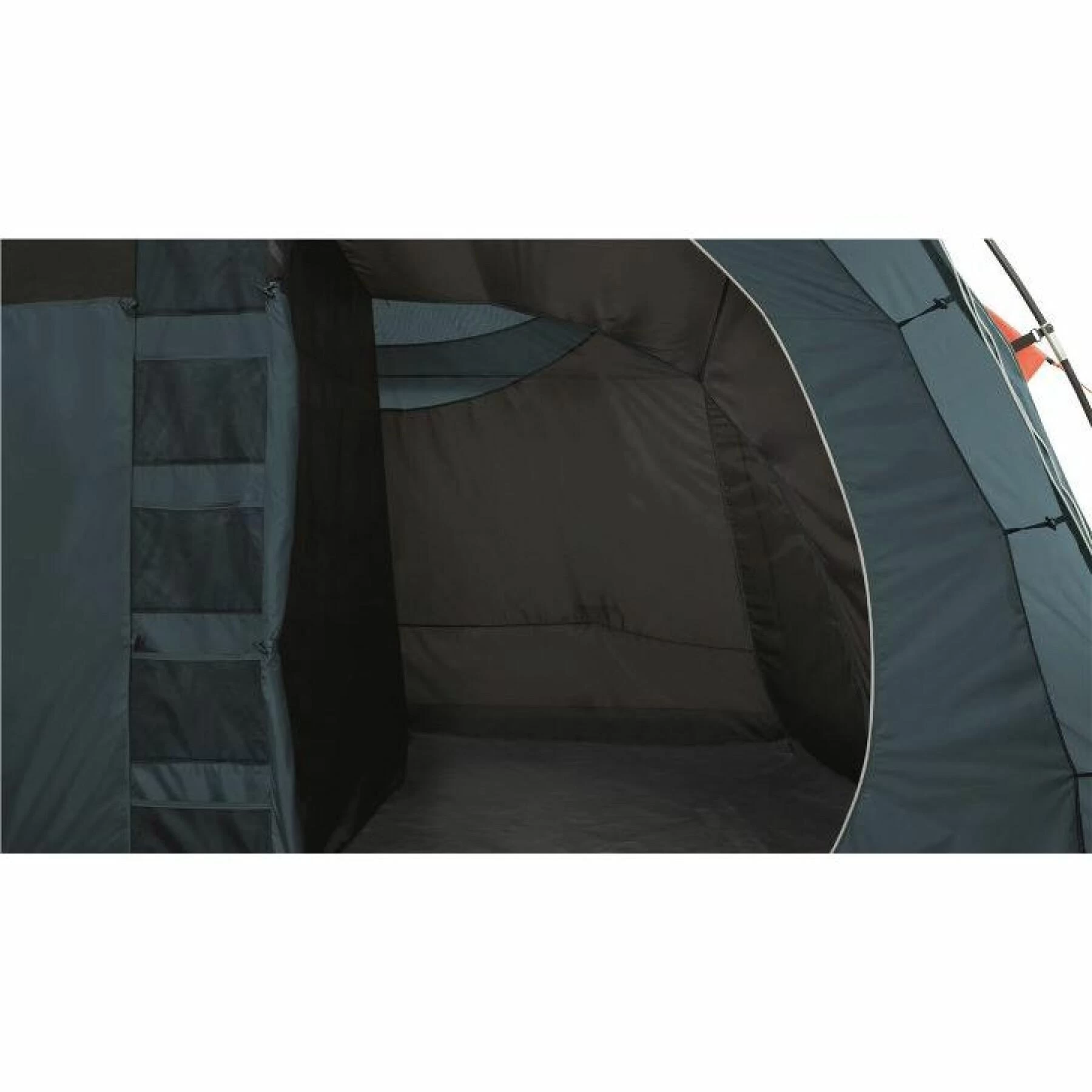 Pochettes de rangement dans l’espace de vie et dans la tente intérieure.